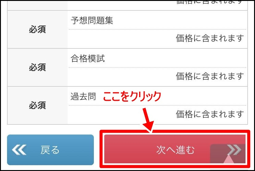 画面下へスクロールして『次へ進む』をクリックしてください。