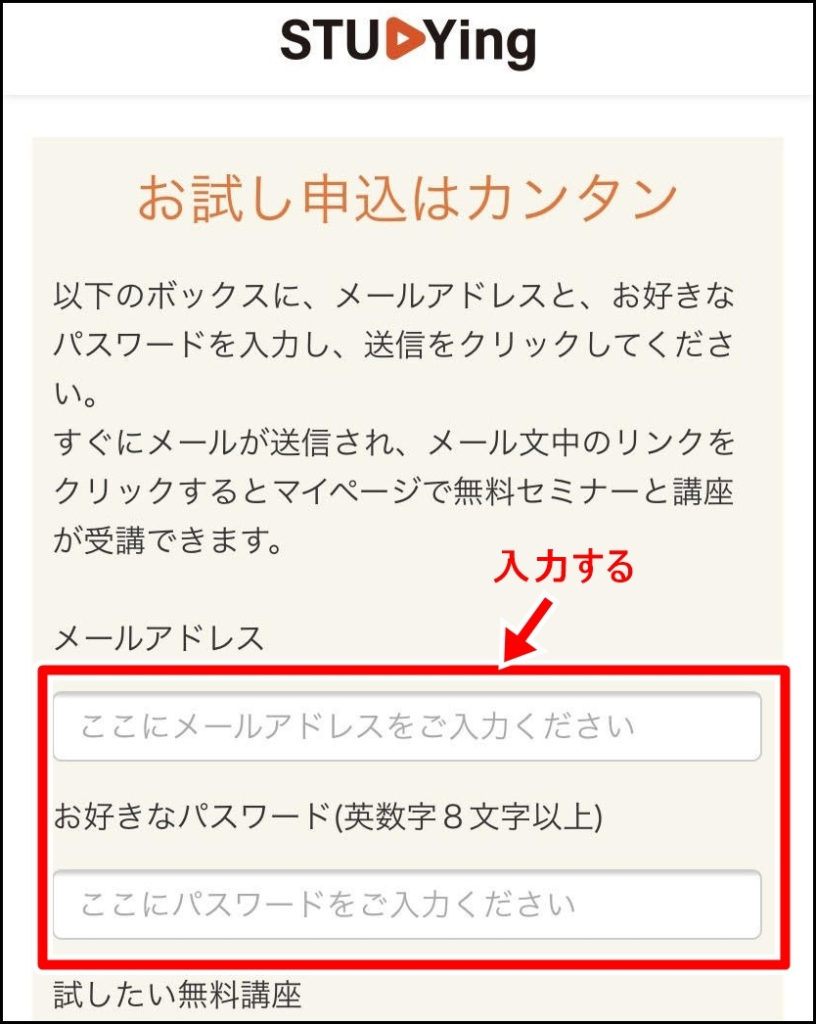 - その①:スタディングに無料登録をする