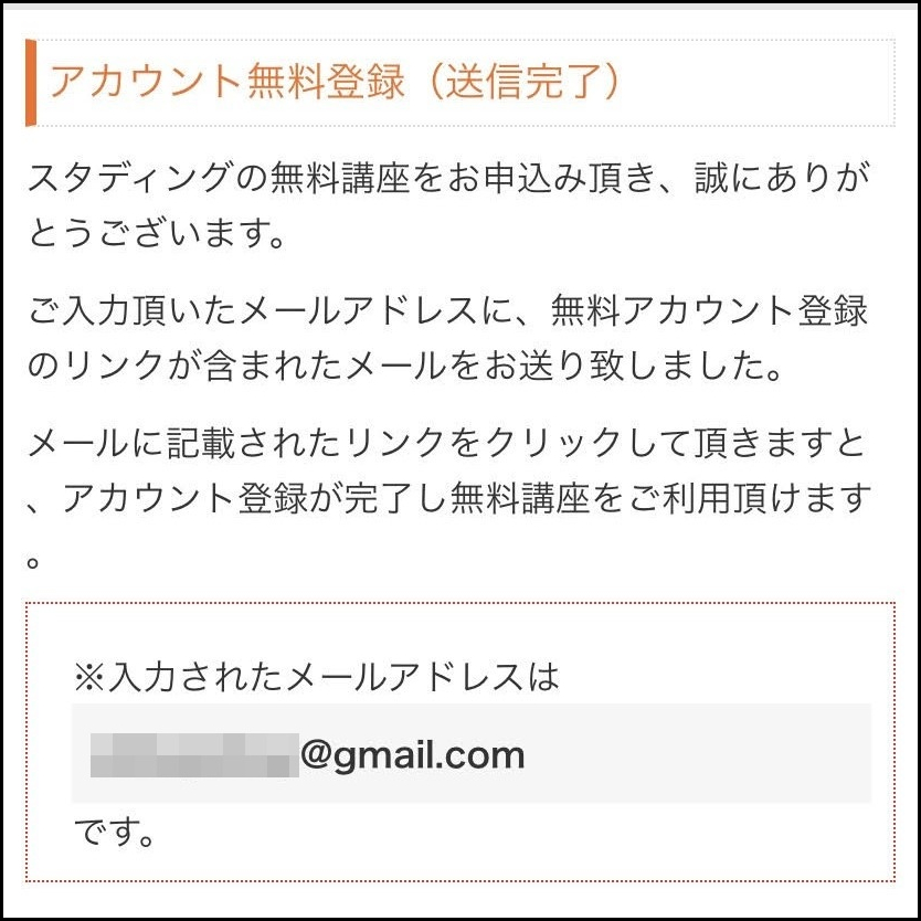 それでは手順の説明に入ります。まずはスタディングの無料登録を完了させます。